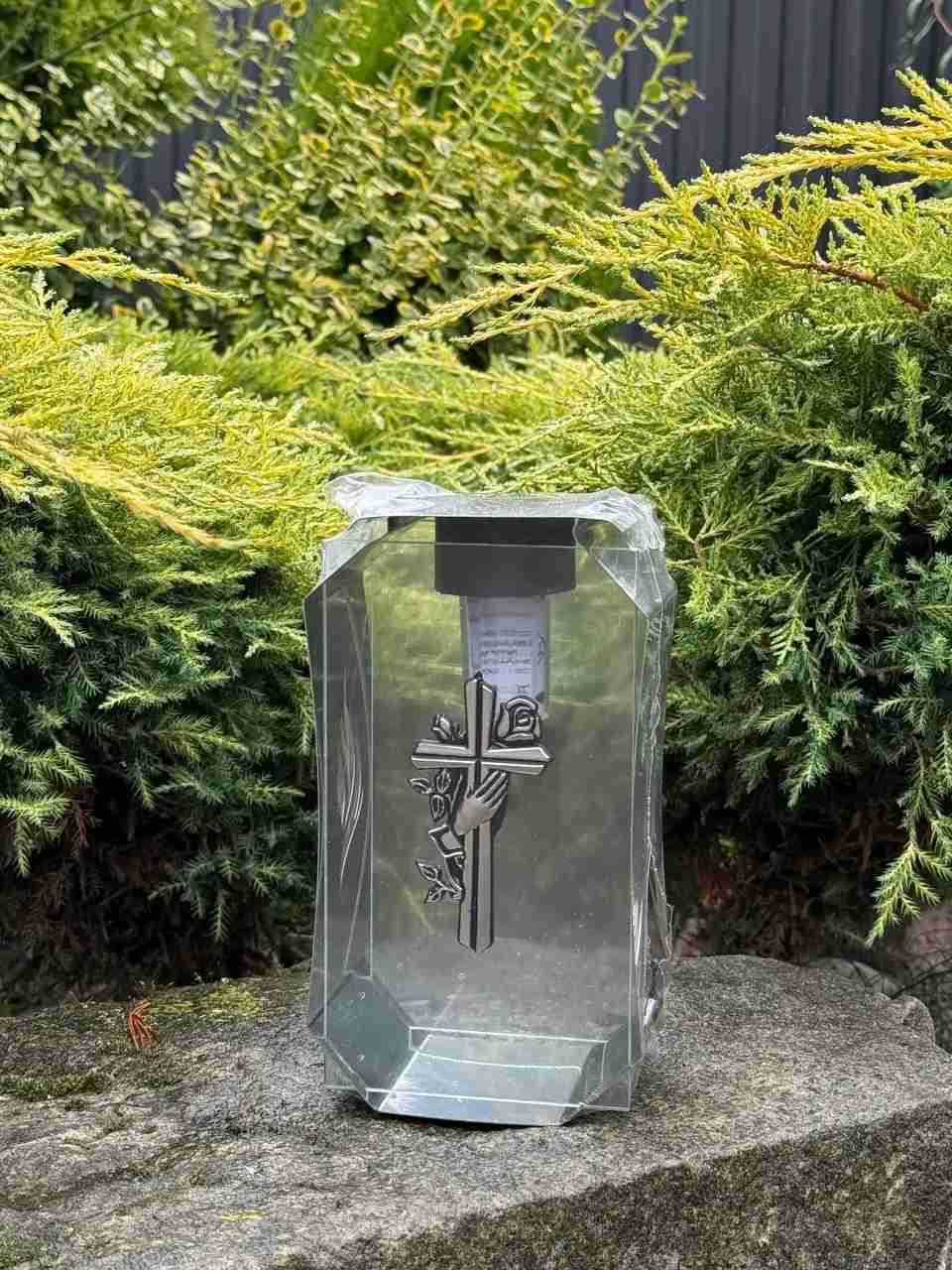 Підходить для встановлення на могилі або в місцях пам’яті. Має стійку основу та елегантний зовнішній вигляд.