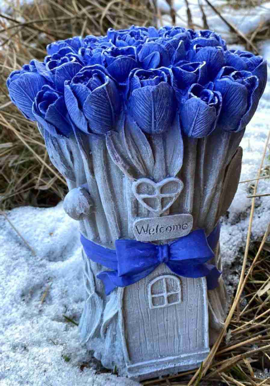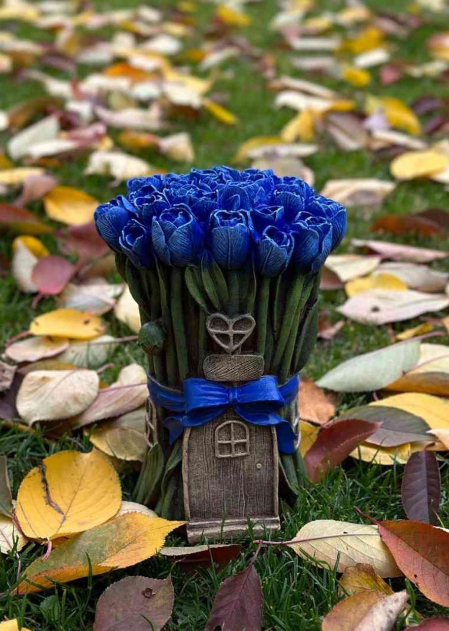 Сині квіткові будиночки не бояться погодних змін - залишаються яскравими і цілими під відкритим небом.