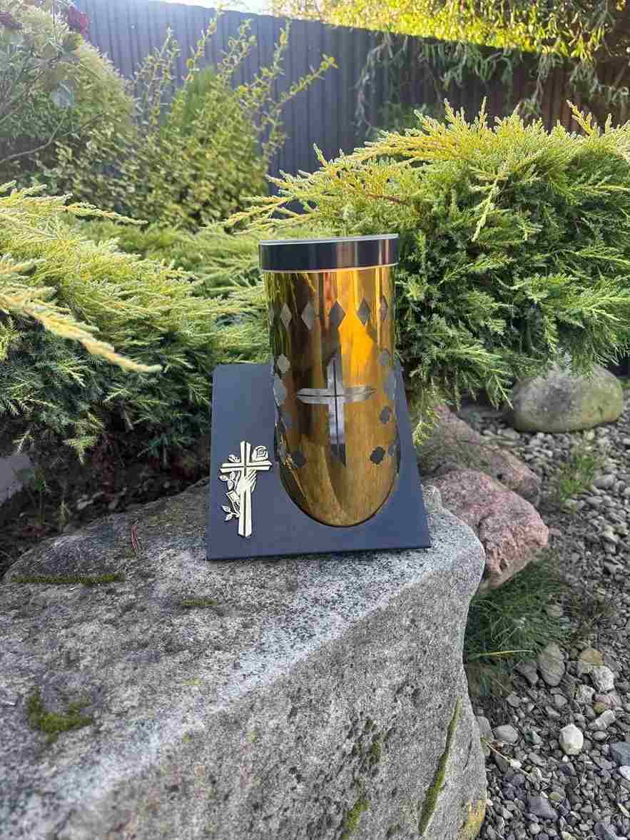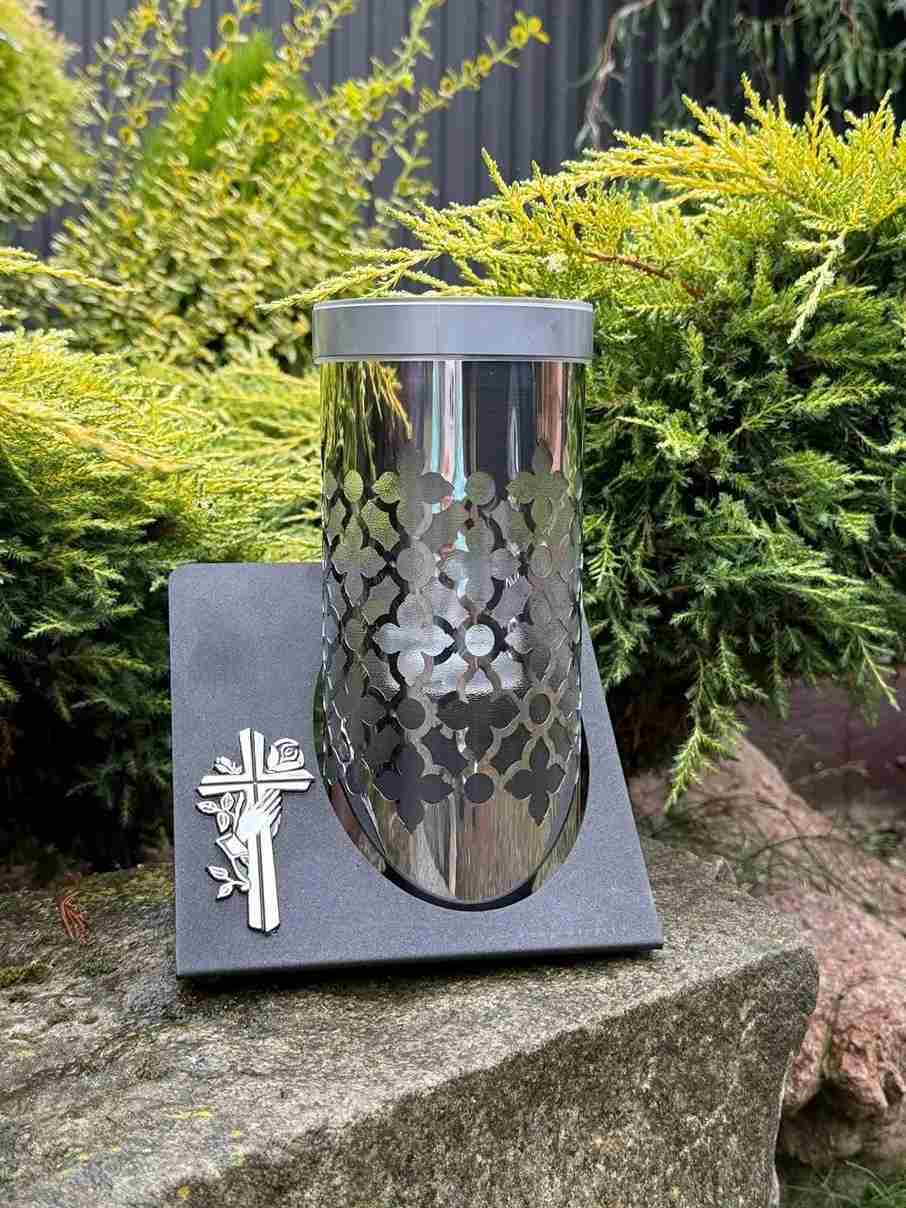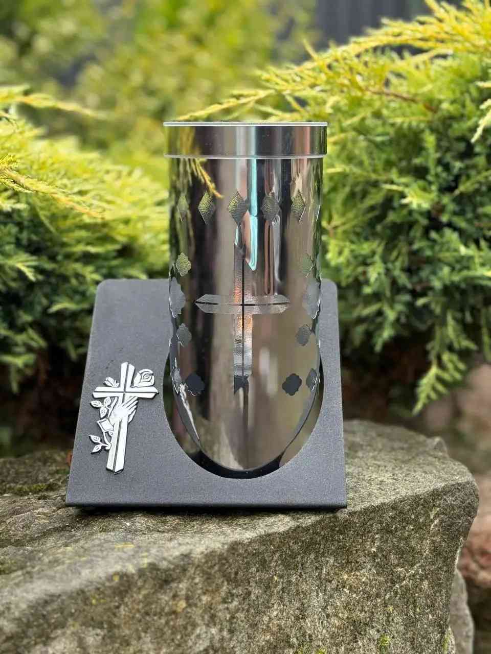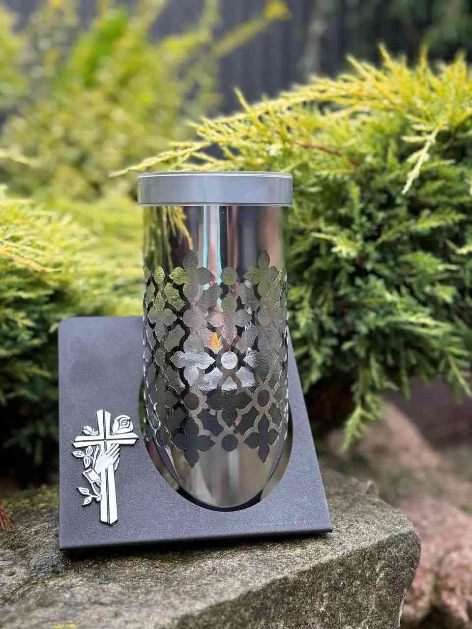 Підходить для встановлення на могилі або в місцях пам’яті. Має стійку основу та елегантний зовнішній вигляд.