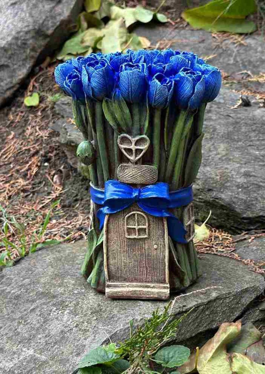 Сині квіткові будиночки не бояться погодних змін - залишаються яскравими і цілими під відкритим небом.