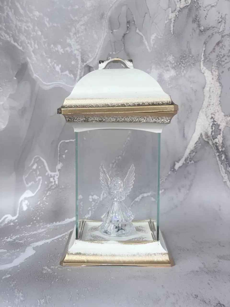Вишуканий декоративний ліхтарик у класичному корпусі з прозорими стінками. Усередині - фігурка ангела з кришталевим ефектом, що м’яко підсвічується LED-світлом.